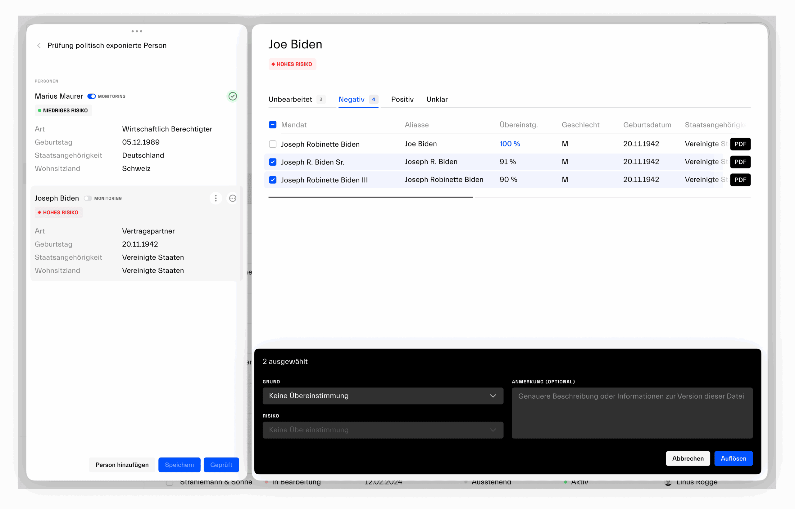 - PrĂĽfung auf Politisch exponierte Personen, Sanktionen & Adverse Media
